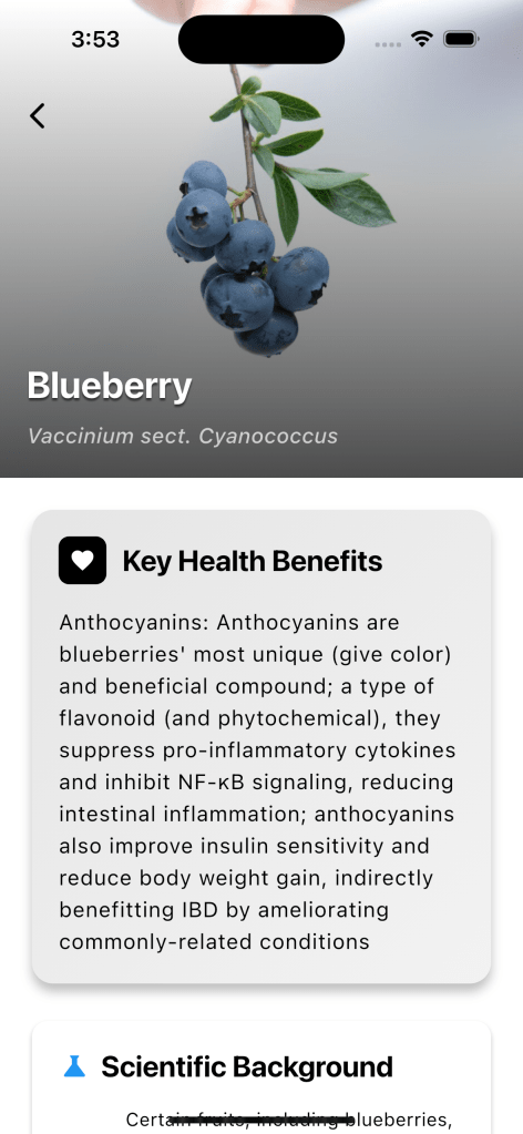The IBD Digest is a free, independently developed iOS app, suggesting an alternative treatment method to IBD symptoms: nutrition.
